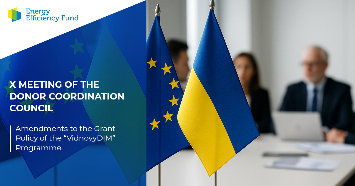 The 10th meeting of the Donor Coordination Council of the Energy Efficiency Fund took place today, bringing together representatives of the Government of Ukraine, the European Union, Germany, the International Finance Corporation, Deutsche Gesellschaft für Internationale Zusammenarbeit (GIZ), and other partners. The hybrid-format event served as an important platform to discuss the EEF’s results and its strategic plans for the future.