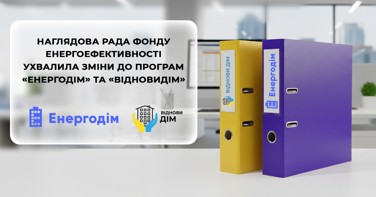 Наглядова рада Фонду енергоефективності затвердила зміни до  програм — «Енергодім» та «ВідновиДІМ». Рішення спрямовані на розширення фінансових можливостей для ОСББ, спрощення процедур участі та посилення енергетичної стійкості багатоквартирних будинків.